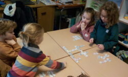 La dictée de cette semaine nous a fait découvrir l’art aborigène. Les oeuvres des artistes aborigènes racontent comment leurs ancêtres ont façonné le monde. Cette époque est appelée le temps du rêve. Nous avons donc essayé d’imiter cet art.
