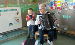 Le vendredi, c’est le jour de la musique . Et ce vendredi 10 avril, de 9h à 10h , la mamie de Gabin, mamie Mimi, est venue jouer de l’accordéon pour nous. Elle nous a montré et expliqué son instrument …Nous avons fait la chenille…Merci Michèle pour ce beau moment.