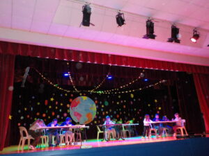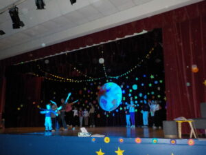 Le décor, le son, les lumières , tout est là . Les enfants connaissent tout par coeur …Le spectacle va être beau !