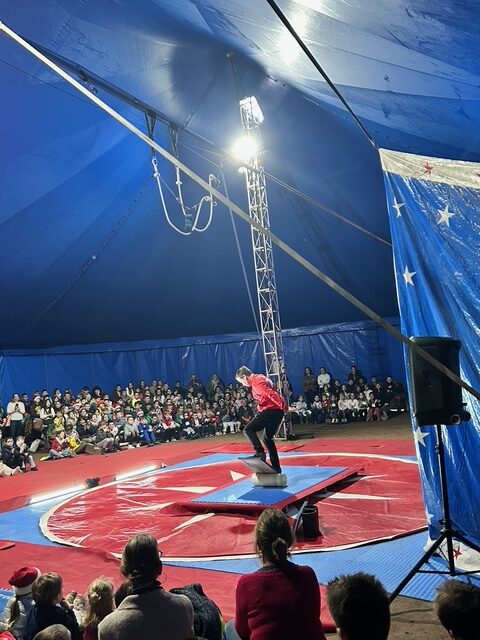 Vendredi 19/12, nous sommes tous allés voir un spectacle intitulé “Esprit Cirk” offert par Vendée Grand Littoral. Ce spectacle a été réalisé par l’école de cirque de La Mothe Achard