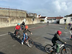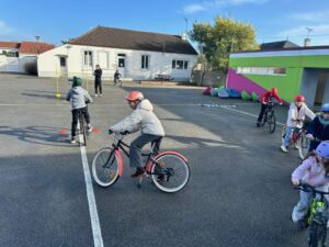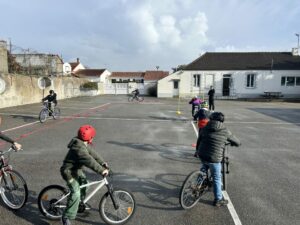 Toutes les semaines, les CP/CE/CM apprennent à circuler à vélo en sécurité avec Théo.