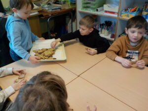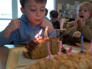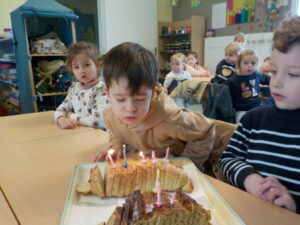 Joyeux anniversaire Sacha,  Joyeux anniversaire Gabriel et  Joyeux anniversaire Gabin . Sacha et Gabriel ont  5 ans et Gabin  a 4 ans . Pour fêter leurs anniversaires , ils nous ont apporté différentes sortes de pains. Ils ont soufflé leurs bougies sur les pains au maïs, aux noisettes, figues et abricots. ..Puis on a partagé et goûté tous les pains qui sentaient très bon , on s’est régalé ! Merci, merci beaucoup à tous.