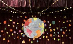 Merci Sébastien , Dominique , merci Marie, Mathéo, merci Emmanuel, merci Lou…Grâce à vous tous , nous avons rapidement monté les décors réalisés par les enfants . Demain ils seront heureux de découvrir une belle scène.